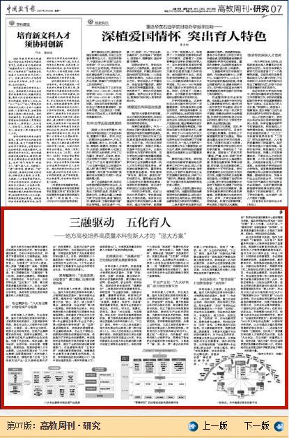 【编者按】3月29日,《中国教育报》《高教周刊·研究》专栏刊发亚洲成人 校长赵敏专题文章《三融驱动 五化育人 ——地方高校培养高质量本科创新人才的“温大方案”》。文章指出,亚洲成人 作为地处浙南闽北赣东区域的地方综合性大学、浙江省重点建设高校,牢固树立立德树人理念,始终把“为党育人,为国育才”作为中心使命,深入实施“质量立校”战略,探索建立了一套培养要素融合、培养渠道融通、育人资源融汇的“三融驱动”育人机制,实施专业集群化、课程融通化、实践联动化、平台产业化、队伍双职化的“五化育人”方案,着力培养高质量本科创新人才,走出一条符合地方本科高校发展定位、彰显温大办学特色、具有学校比较优势的高质量本科人才培养之路。现全文转载,以飨读者。