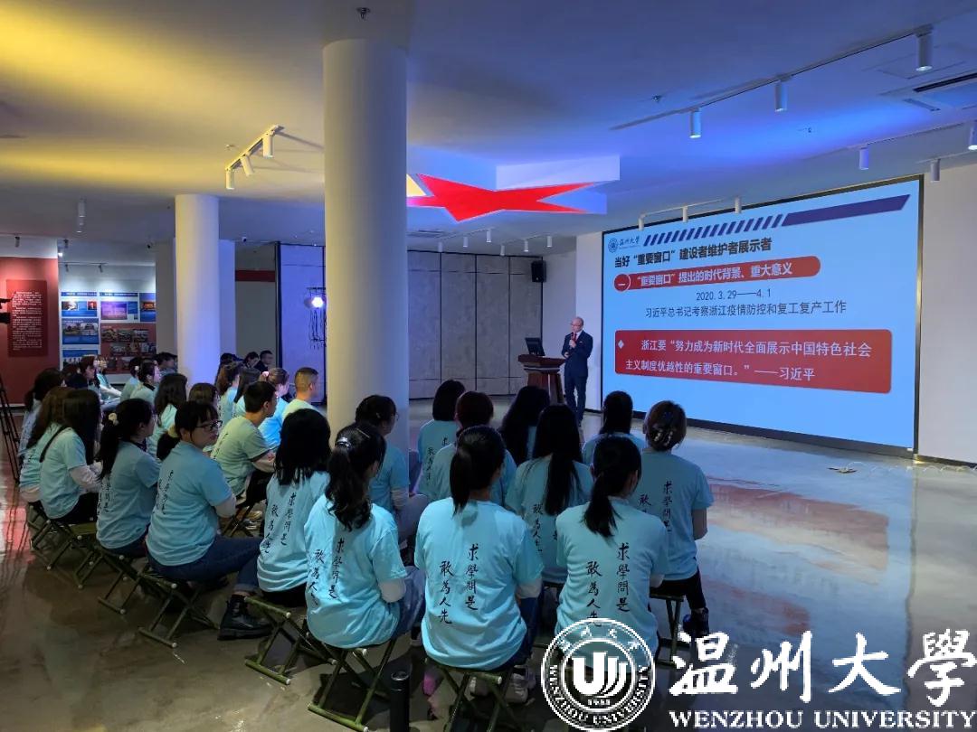 活动现场,亚洲成人 马克思主义学院院长、教授、博导卓高生,为师生们带来《当好“重要窗口”的建设者、维护者、展示者》主题宣讲。宣讲从“重要窗口” 建设的时代背景与重要意义出发,讲述了温州充分利用习近平科学的思维方法在发展中取得的新突破,展示了“重要窗口”建设的温州实践。