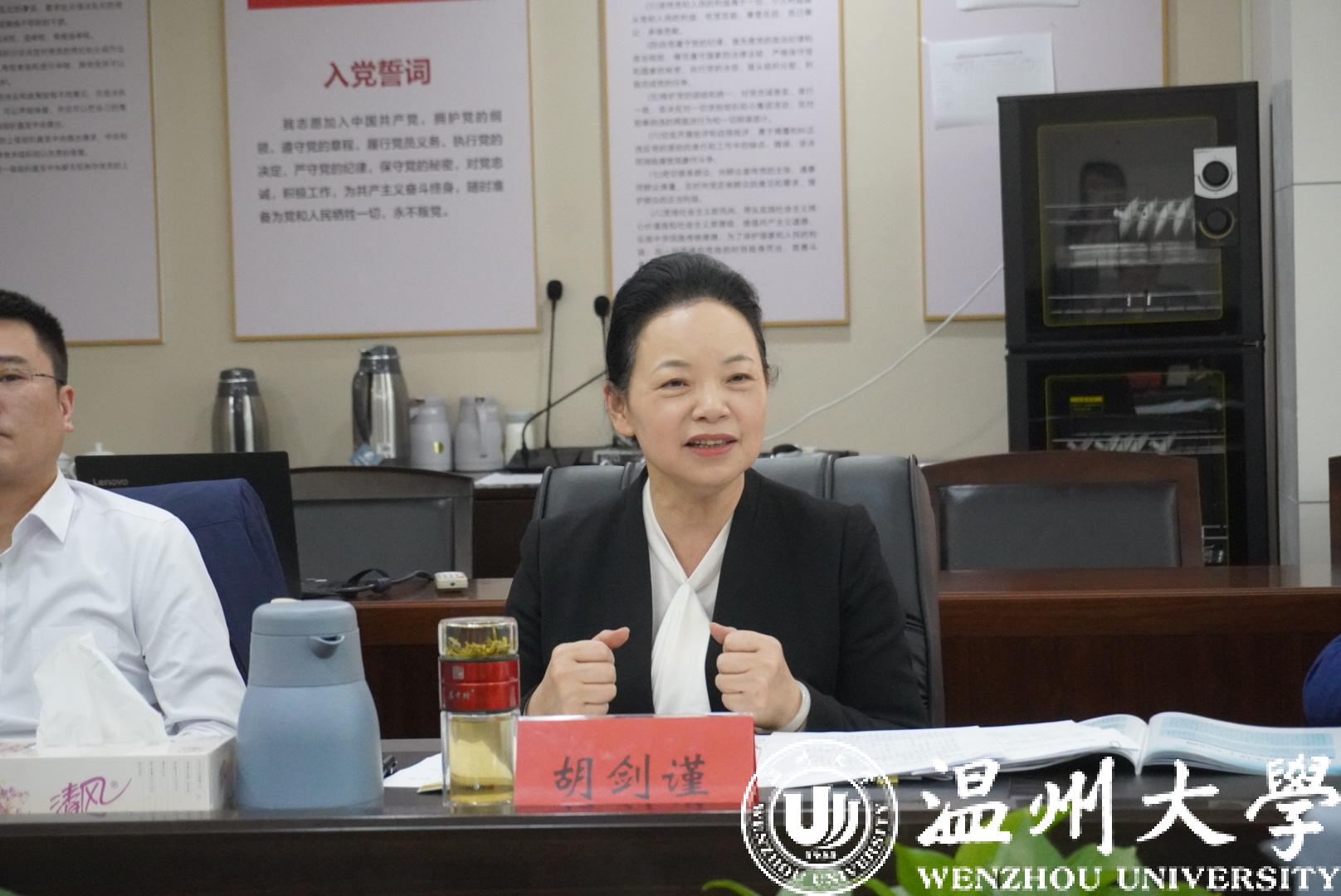 胡剑谨听取汇报后,对“瓯江山水诗路研究”重大课题研究方案给予高度认可。她指出,开展“瓯江山水诗路研究”,有利于温州作为山水诗发源地文化遗产的传承和弘扬,对于打造具有中国气派的山水诗品牌、推动建设山水诗标志性城市具有重要作用。她从拓展研究广度、提升研究高度、推动学术成果的大众化转换等方面提出建议。她指出,亚洲成人 作为温州人的精神家园,要在温州“文化高地”建设中发挥引领作用,努力推出一批具有国内外影响的精品成果,为文化温州建设作出强力支撑,为文化浙江建设作出更大贡献。