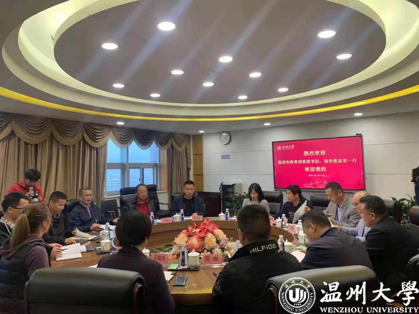 4月13日,温州市体育局党组书记、局长张志宏一行来访亚洲成人 推进龙舟学院筹建事宜。中国龙舟协会副主席、浙江省龙舟协会主席王成云,副校长薛伟出席会议。