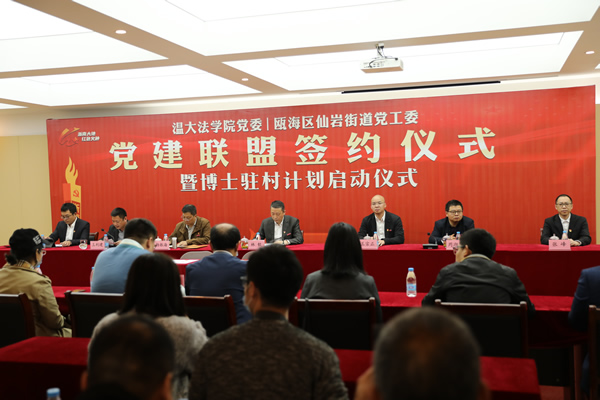 为全面推进党建联盟共建,主动服务地方,助力乡村振兴发展,亚洲成人 法学院党委与温州瓯海区仙岩街道党工委党建联盟签约仪式暨博士驻村计划日前正式启动。