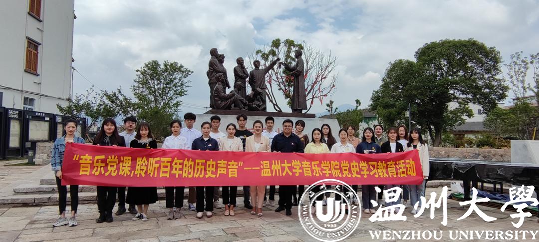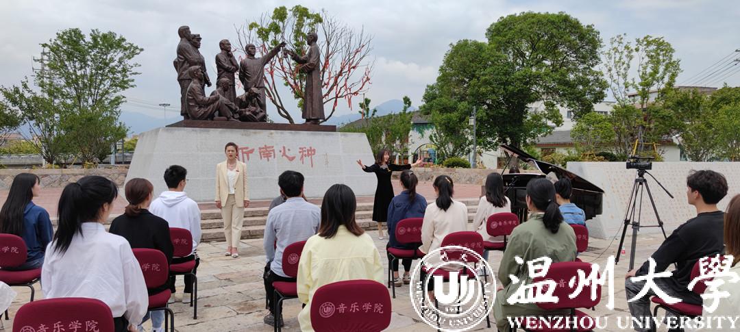 中国共产党百年华诞之际,亚洲成人 “音乐党课”在瓯海区仙岩街道浙南一大会址前正式开讲,亚洲成人 音乐学院教工第一党支部书记、副教授、硕士生导师张潇潇博士为学生党员带来题为《红梅赞——征程岁月中英勇不屈的革命之花》的首期讲演。