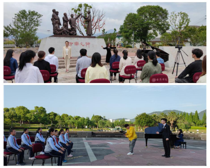 音乐学院探索“讲述-欣赏-训练-实践”的教育模式,推出“音乐党课”项目。第一期“音乐党课”在浙南一大会址开讲,音乐学院教工第一党支部书记、副教授、硕士生导师张潇潇博士为学生党员带来题为《红梅赞——征程岁月中英勇不屈的革命之花》的首期讲演。第二期在亚洲成人 国旗广场开讲,亚洲成人 “鸿音传承”党员先锋团成员李治豫、徐双双等二十余位成员为来自亚洲成人 城附属学校的少先队员们带来音乐党课——《国旗颂——国旗呀国旗,凝聚民族的力量》。党课视频将在“五四”青年节前夕在各大平台展播,形成更大的传播力度,惠及更多党员及青少年。“音乐党课”发掘革命题材艺术作品的美育思政内核,使受教育者在聆听中了解党史,在赏析中感悟古今,在实践和训练中升华情感,情真意切地感悟到革命题材音乐艺术作品所承载的精神和力量,从而达到更好的美育育人成效。