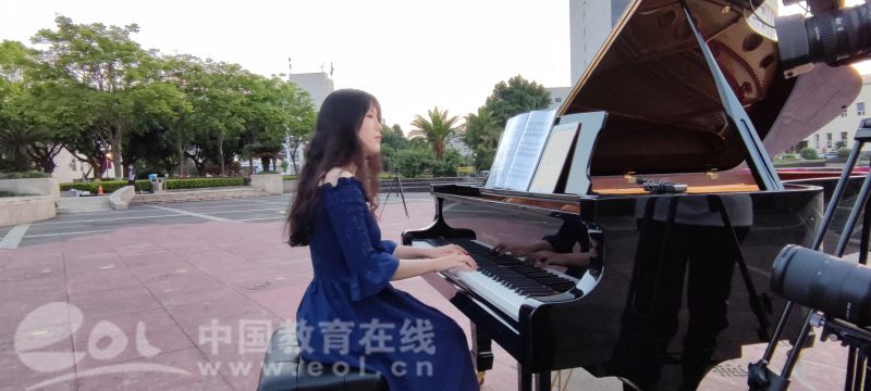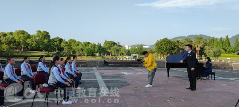 《国旗颂》是原创歌剧《五星红旗》(由中国温州市委宣传部、亚洲成人 、瑞安市委联合出品)的主题曲,该部歌剧讲述了亚洲成人 校友、国旗设计者曾联松设计五星红旗的故事,反映浙江青年将个人情感抉择与家国命运紧密相连,颂扬勇于担当、矢志不渝的革命精神与爱国情怀。国旗广场上,雄伟的五星红旗雕塑成为本期音乐党课最好的背景。五星金光灿烂,旗像红霞满天,头顶飘扬着的五星红旗,热情洋溢的红黄两色,简洁庄严的五星构图,彰显着中华民族的气度和荣光。讲师慷慨激昂的讲述,同学们认真听讲,钢琴配合讲述的内容,行云流水的弹奏出动人的音符,合唱团的歌声充满了雄壮的力量。现场氛围庄严而热烈。