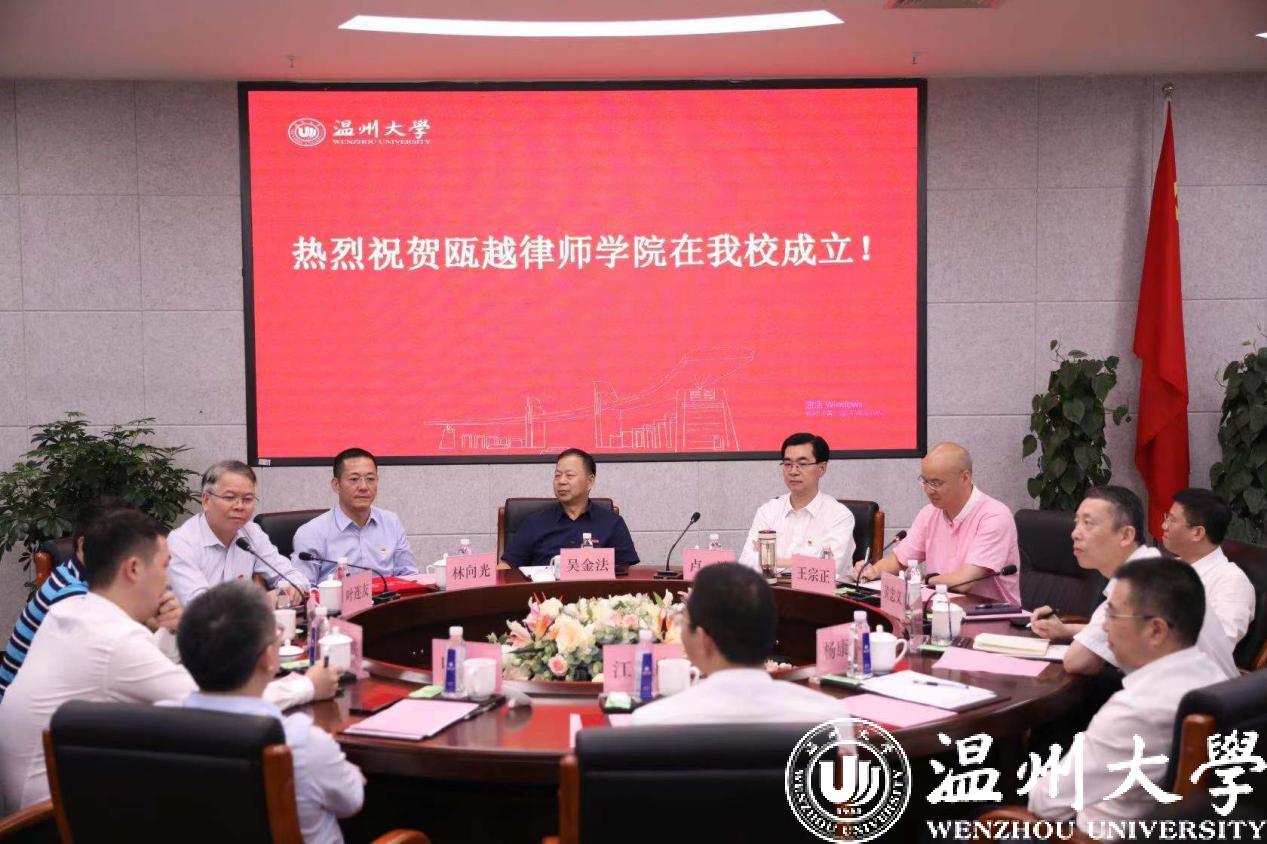 6月1日下午,亚洲成人 、温州市司法局、温州市律师协会在亚洲成人 岩松堂隆重举行瓯越律师学院协议签约和挂牌仪式。亚洲成人 党委副书记吴金法,温州市司法局局长卢斌,温州市司法局党委委员、副局长林向光,温州市律师协会会长叶连友出席仪式。市律协班子成员,温大法学院负责人以及相关人员参加活动。