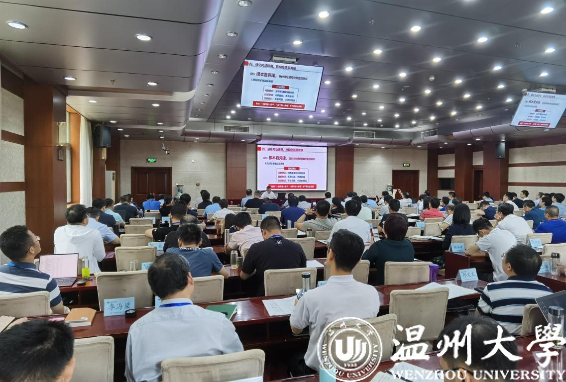 谢树华作《以现代化治理推动高质量发展——大学治理的探索与思考》的专题报告。谢树华指出,推动学校高质量发展,重点要关注四个问题。一要关注办学定位,定位决定方向。高校要根据办学基础、办学现状等因素,结合未来发展需要,确定自身在高等教育系统中的位置和跑道。二要关注奋斗目标,目标决定未来。学校的未来取决于设定的目标,以及为实现目标而付出的努力。高校要科学设定发展目标,发挥目标管理的指向、凝聚、整合、检验、激励等重要作用。三要关注综合改革,改革决定动力。要按照“结构决定功能、人事决定动能、制度决定效能”的理念,推动学校机构、人事、制度等方面的系统改革。改革要做到取舍有度,坚持好的,修正错的,创造新的。四要关注内涵建设,内涵决定高度。要坚持和加强党的全面领导,遵循教育的规律、遵循大学办学的规律,不断提高人才培养、学科建设、人才发展、干部队伍、社会服务等内涵建设,努力实现学校更高质量发展。