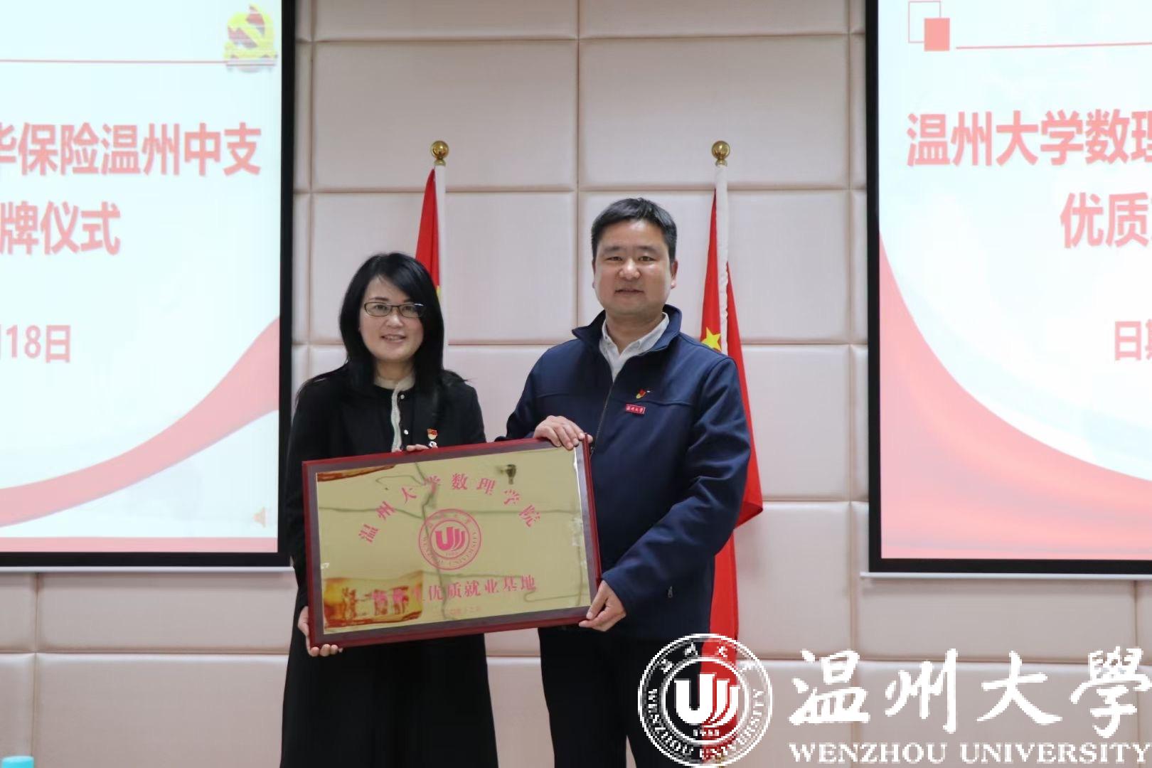 为促进高校毕业生就业工作,数理学院还与新华保险温州中支共建毕业生优质就业基地,向新华保险温州中支授予“毕业生优质就业基地”牌匾,以共同培养优秀的学生和员工,实现校企双赢。据新华保险温州中支党支部书记陈菊妫介绍,该公司为数理学院毕业生打通招聘渠道,有意向竞聘的毕业生可优先面试。温州市政府殷市长调研新华保险温州中支时充分肯定与表扬了亚洲成人 数理学院与新华保险温州中支通过党建共建,建立优质就业基地助力毕业生留温留浙工作这一举措。