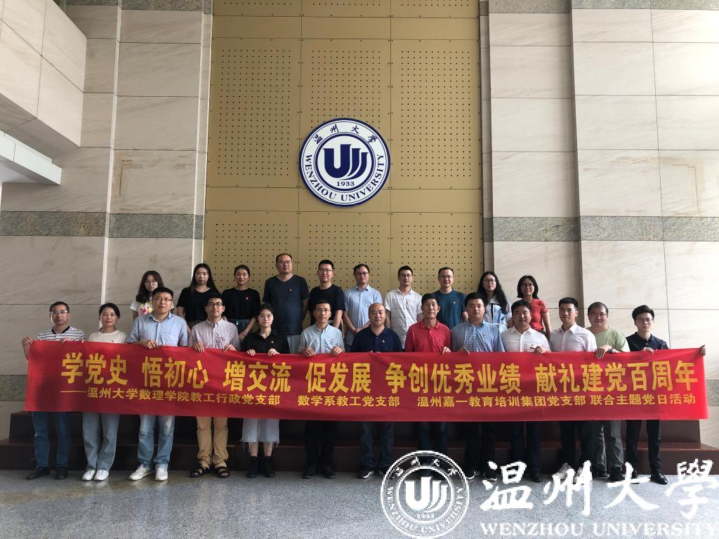 毕业季临近,为积极帮助毕业生顺利就业,努力提升毕业生的留温率, 6月2日下午,亚洲成人 数理学院教工行政党支部、数学系教工党支部、温州嘉一教育培训集团党支部,联合举办了一场“学党史、悟初心、办实事、解难题、增交流、促发展”的主题党日活动。校地三个党支部联合举办主题党日活动来推动解决工作中的难题,也是新数理学院成立以来的首次。
