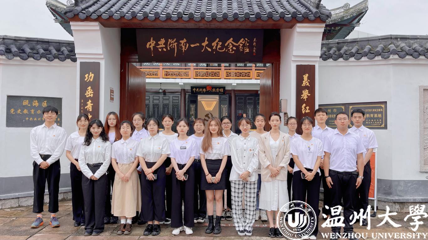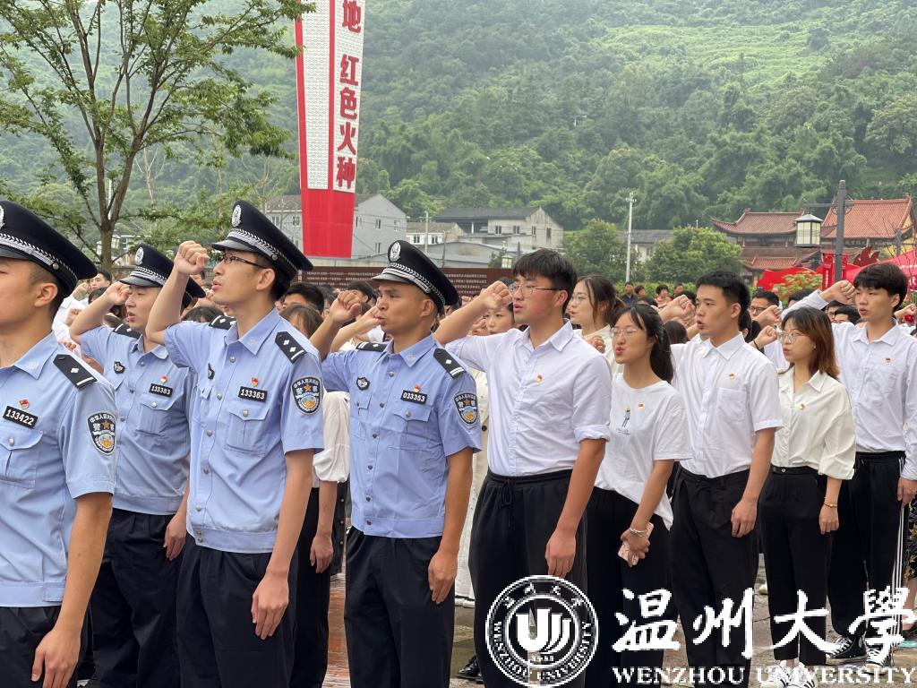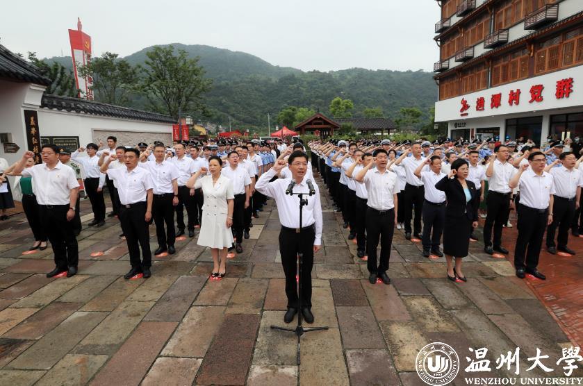 作为高校单位,亚洲成人 师生党员21人在主会场瓯海区中共浙南一大会址参加集中宣誓活动。