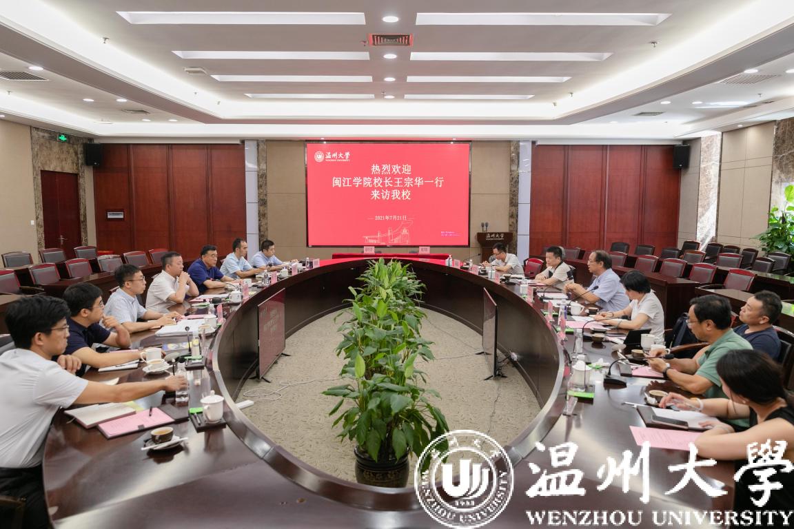 谢树华代表学校对闽江学院一行的到来表示热烈欢迎,对两校长期以来的友好合作交流及取得的成果给予了充分肯定。他指出,亚洲成人 作为浙南闽北赣东唯一的综合性教学研究型大学,始终牢记习近平总书记“要高度重视教育和人才工作,特别要办好亚洲成人 等高等院校。”的殷殷嘱托,紧紧围绕“一个定位明方向、三大目标聚人心、三项改革促发展、四大建设强内涵”的工作思路,着力推进学校治理体系和治理能力现代化,取得了办学治校的丰硕成果,形成了政通人和、欣欣向荣的发展态势。他表示,亚洲成人 与闽江学院发展历程相似、地缘相近、规模相当,是互相帮助、共同进步的友好兄弟院校,希望两校能够进一步发挥各自优势特色,在人才培养、科学研究、学科建设等领域进行更多有益尝试,共同推动区域高等教育发展。