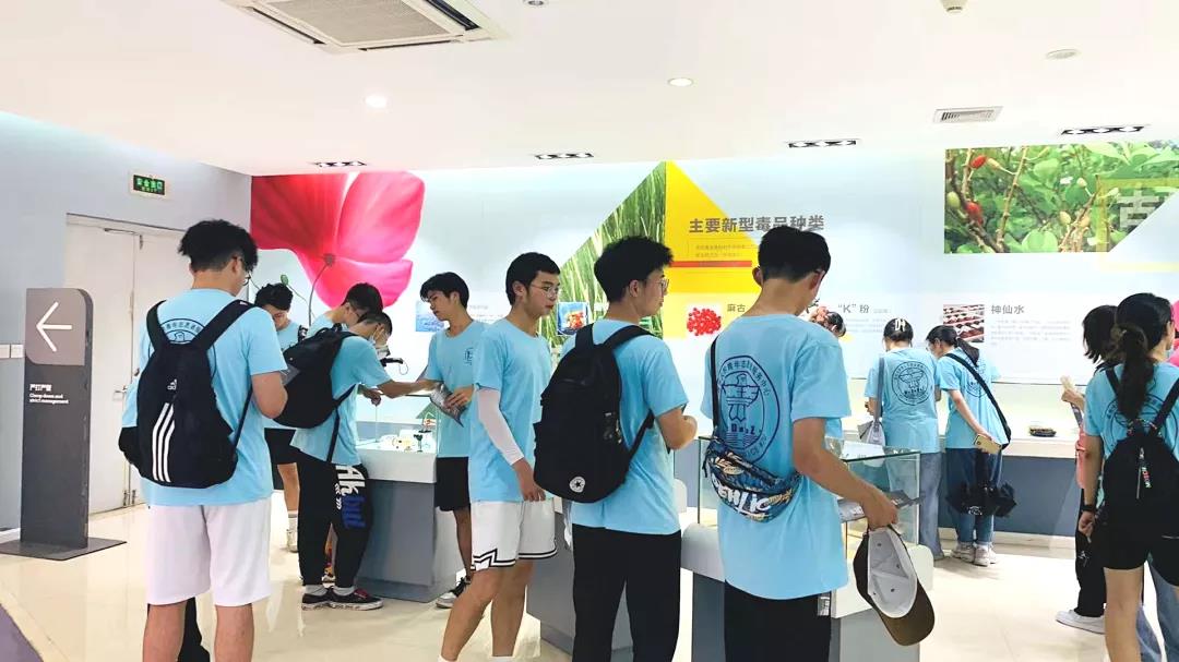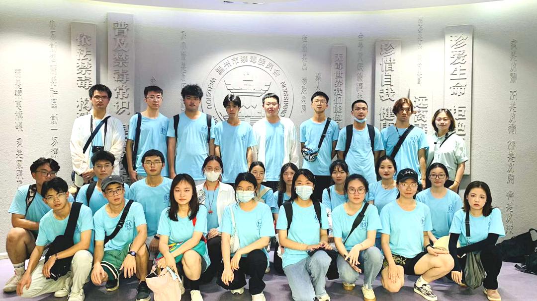 毒品一日不绝,禁毒一刻不止。为了开展禁毒宣传,增强大学生禁毒意识,2021年7月11日下午烈日当空,亚洲成人 “无毒青春”暑期社会实践队26名大学生冒着酷暑走进温州市学生实践学校温州市禁毒教育基地开展暑期禁毒社会实践,增长毒品知识。