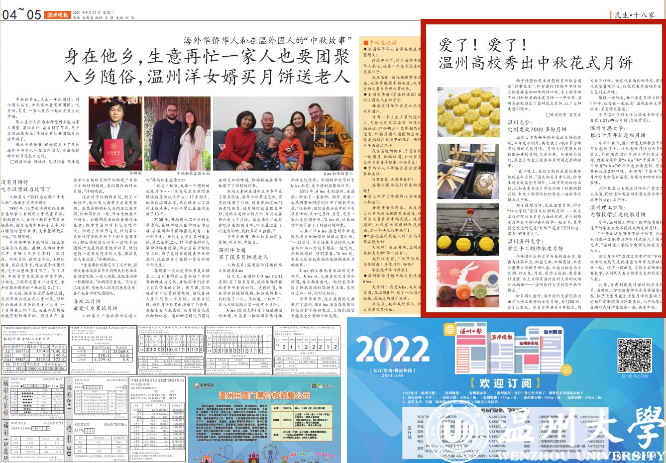 “在口味上,我们定制的是最经典传统的五仁月饼。”温大相关负责人说,除学生处发放这些月饼外,二级学院也纷纷出招,比如美术与设计学院订购了校徽同款月饼,机电工程学院组织学生一起制作月饼共庆中秋。