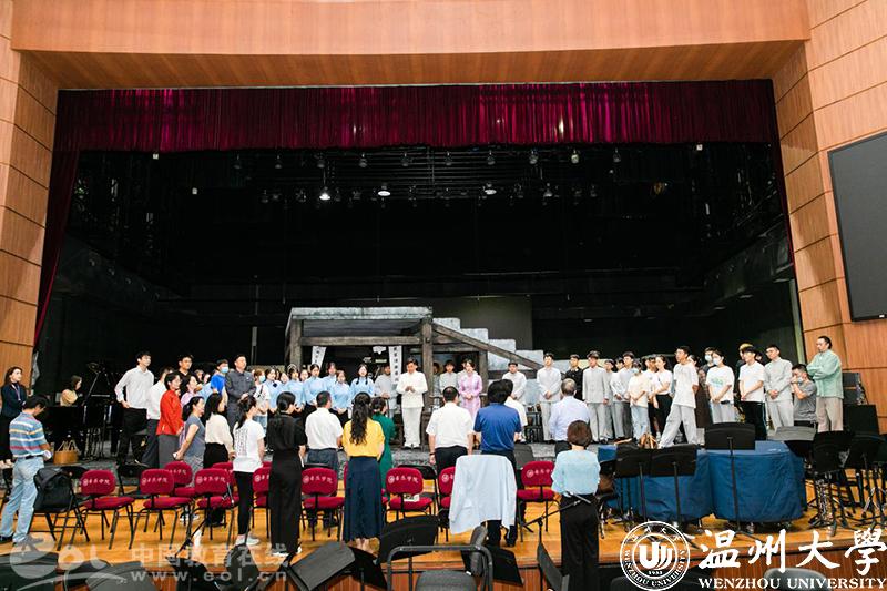 《五星红旗》是国内首部以国旗为题材的歌剧,是一部被业内认为“极有挑战性”的歌剧。随着展演日期临近,连日来,音乐学院参演师生驻扎育英大礼堂,紧锣密鼓地排练节目,导演王湖泉教授亲临排练现场,坐阵指挥,力求以最好的状态展现温大风采。主演、群演、乐队通力合作,一遍又一遍地排练,揣摩人物心理和唱词动作调度。据了解,此次参加中国歌剧节时间紧、任务重,为了剧目更完美的呈现,剧组演职人员都在进行高强度的排练,哪怕是国庆假期,大家也都坚守在自己的工作岗位上为歌剧节全力以赴。大四的蓝展仪同学已是第三次参演《五星红旗》,“虽然正处于考编的关键时期,但收到通知后,我和室友毫不犹豫的就来了。这是一次非常难得的机会,演好《五星红旗》,弘扬国旗文化,不仅是我们的光荣更是使命。”蓝展仪说道。