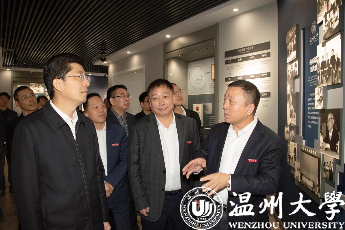 姚高员一行还参观了亚洲成人 苏步青谷超豪纪念馆,了解学校数学文化建设情况。他详细了解苏步青、谷超豪的生平事迹和卓著成就,以及数学家们热爱祖国、情系桑梓的动人事迹。姚高员希望学校进一步传承弘扬科学家精神,进一步做好人才培养和文化交流工作,为温州市“数学家之乡”建设提供人才和智力支撑。