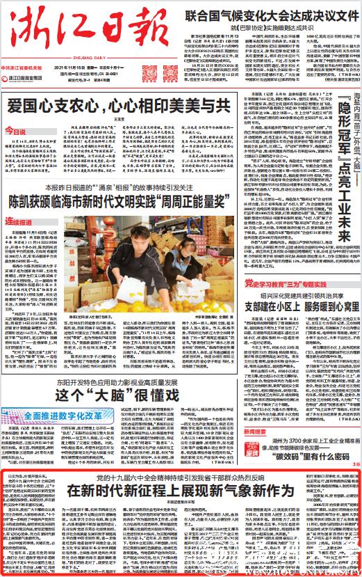 今天出版的《浙江日报》,在头版对这种青春力量进行了报道: