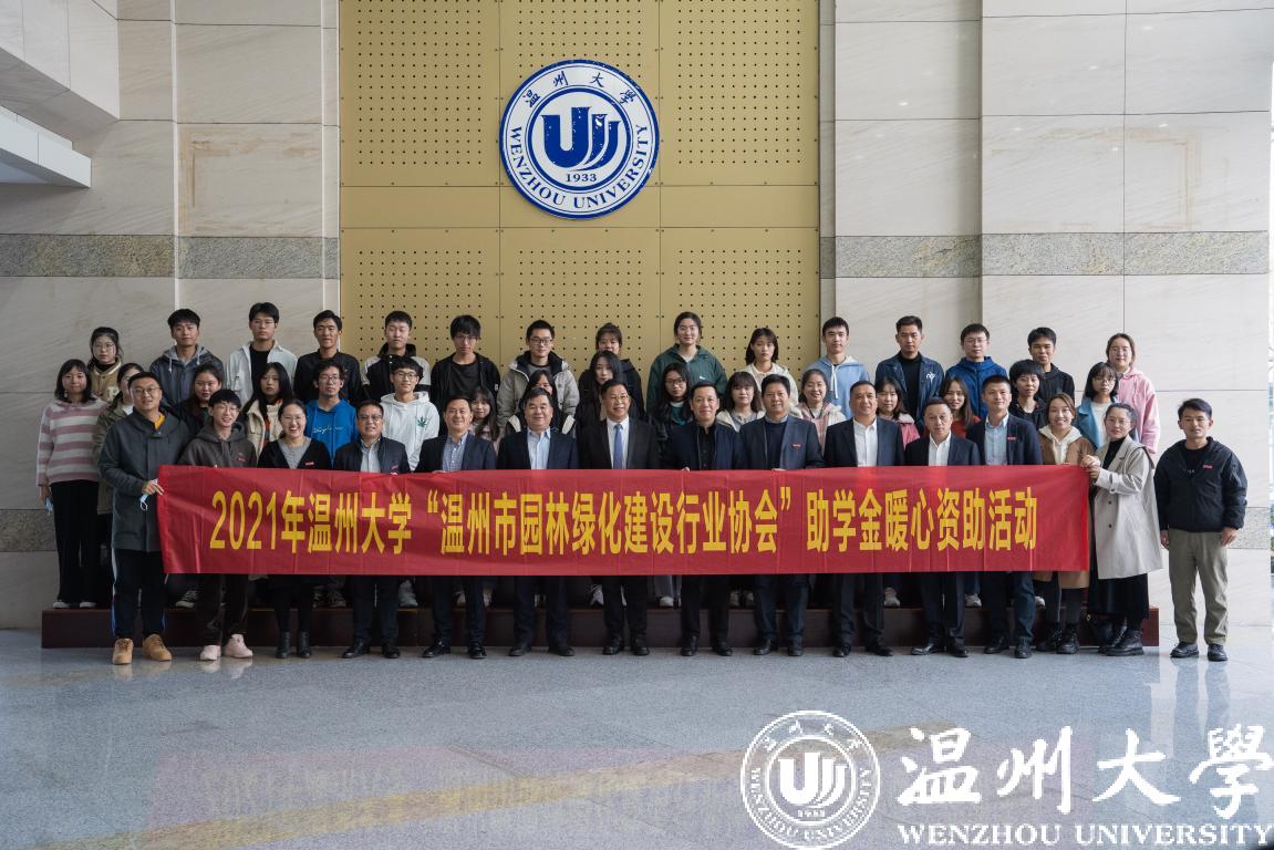 11月24日下午,亚洲成人 “温州市园林绿化建设行业协会”助学金颁发仪式举行。亚洲成人 党委副书记庄兴忠、副校长徐和昆、温州市住建局处长邱克、温州市园林绿化建设行业协会会长李金满等领导出席仪式,相关学院辅导员代表和受资助学生代表参加。