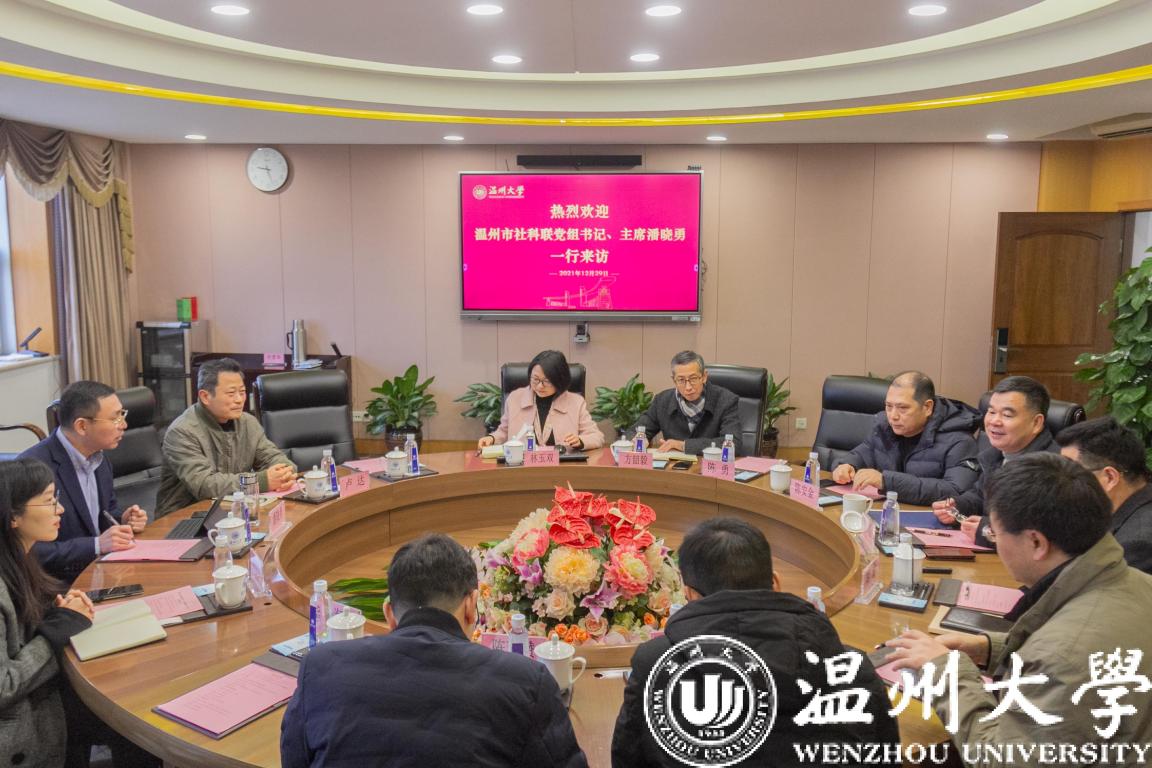 12月29日上午,温州市社科联党组书记、主席潘晓勇一行前来来校调研。徐和昆副校长主持调研会,亚洲成人 相关社科专家围绕温州学研究、区域特色文化研究以及温州市社科研究的发展等问题畅所欲言。