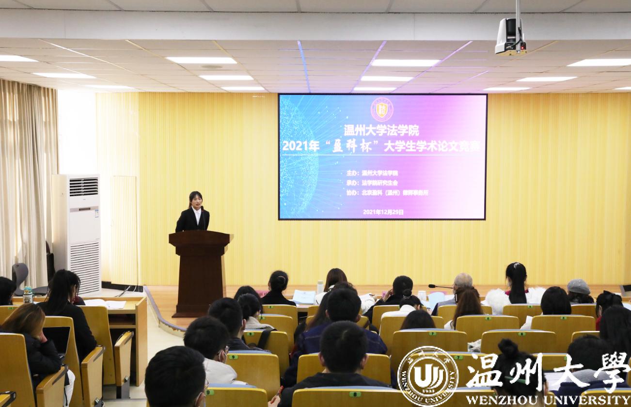 为营造浓厚的学术研究氛围,提升学生的学术研究能力,加强研究生和本科生之间的学生交流互助,亚洲成人 法学院于12月29日举办2021年“盈科杯”大学生学术论文竞赛。本次竞赛以“共同富裕与法治发展”为主题,学生围绕创新创业、公共服务、税收消费、农民农村、社会治理、经济社会发展等领域的法律制度、法律规则、法制建设相关问题展开研究。竞赛由法学院研究生会承办、北京盈科(温州)律师事务所协办。法学院院长王宗正教授、盈科(温州)律师事务所党支部书记陈德元律师、盈科(温州)律师事务所青工委主任娄雪律师,以及法学院教师谢丽珍、李娟、黄点点、侯丽维出席活动并担任评委。