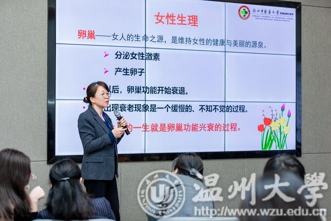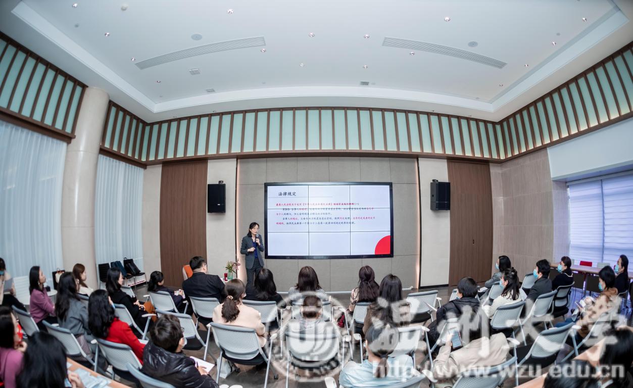 一次分享长见识。3月4日下午,组织了两场庆“三八”主题分享活动。“家庭财产那些事儿”主题邀请温州市女律师联谊会会长、浙江嘉瑞成律师事务所高级合伙人孙海芬律师作为主讲嘉宾,为女教工们讲解家庭婚姻相关法律知识。“春季女性养生”主题邀请温州市中医院副院长、主任中医师孙云作为主讲嘉宾,为女教工们讲解女性春季健康保养知识。