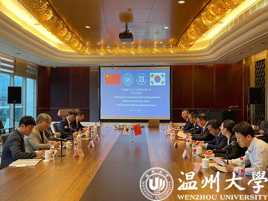 赵敏致辞。他向郑圣泽一行表示热烈欢迎。他指出,全南大学与亚洲成人 合作近10年,双方建立了密切良好的合作关系。双方合作开展的研究成果务实有效,极大程度推动了两校学术发展,尤其是共同培养博士等项目进一步促进了双方教师团队的深入密切合作。他希望今后两校在水生态环境、新能源新材料、电子电器、人工智能、激光光电等领域开展更多学科建设、人才培养等方面的国际合作。
