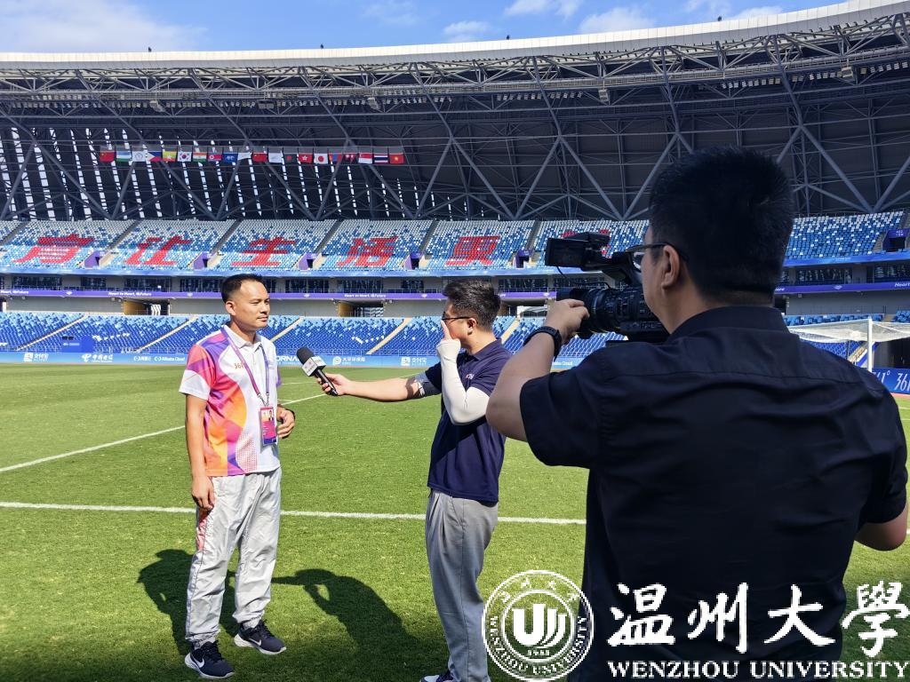 10月2日,温州奥体中心场馆群竞赛技术运行主任、亚洲成人 体育与健康学院副教授林辉老师在温州奥体中心接受央视“亚运1+1”栏目的专访,解答杭州亚运会女子足球1/4决赛比赛过程中因暴雨雷电天气中断的应急预案。