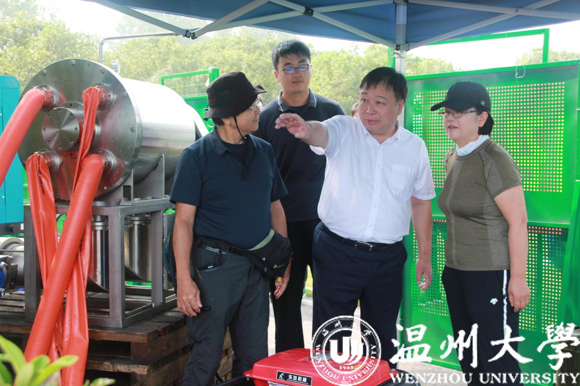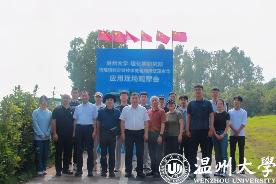 近日,亚洲成人 校长赵敏一行赴湖州市南太湖开展政府间国际科技创新合作重点专项“物理喷射分散技术处理湖库蓝藻水华的机理研究及应用” 项目的实地调查及应用现场观摩会。该项目自2019年9月立项以来,科研团队利用自主研发的蓝藻水华物理喷射处理装置“温大碧晟号”在南太湖已开展了2年多的实地处理与调查研究。