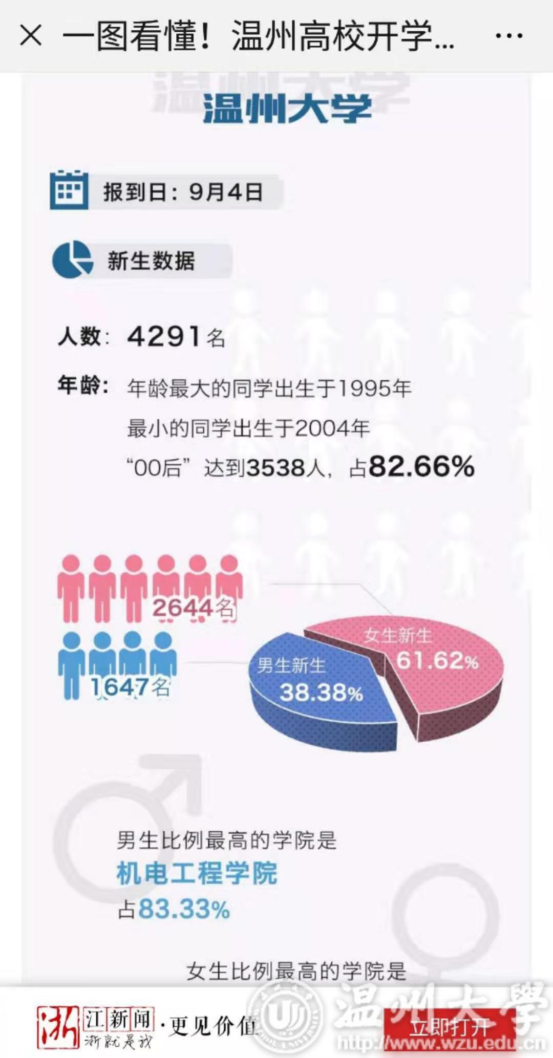 为了欢迎新生们的到来,亚洲成人 各学院、部门开动脑力,积极推出各种“创新”“温馨”举措,各种举措让新生们连连点赞,倍感温暖。今年学校创新做法,优化升级迎新系统,通过大数据平台,实时反馈新生数据,师生们可以随时查看新生报到动态情况,此举也为学校精准掌握迎新情况,提前做好预判及工作筹划提供了科学准确的依据。浙江新闻通过“一图看懂!开学季 揭开温州高校‘萌新们’的神秘面纱”,温州商报通过“大学新生大数据里,有趣信息很多”对亚洲成人 迎新大数据平台进行了报道。