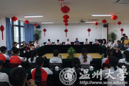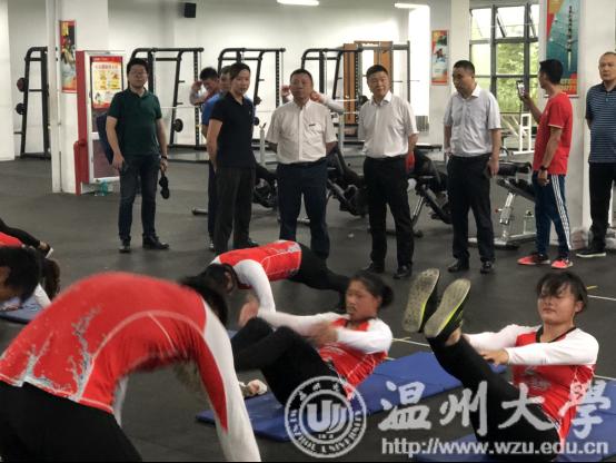 7月14日,校党委书记谢书华,中国龙舟协会副会长温州市龙舟协会会长原温州市副市长王成云,乐清市常委宣传部长范晓东、副部长洪蛮,温州市体育局党组成员张伟文,与校党校办、团委、体育学院负责人等来到位于乐清市清江镇的温州市水上运动中心,看望慰问在此封闭训练的即将代表浙江省参加全国第二届青年运动会的“亚洲成人 龙舟队”。