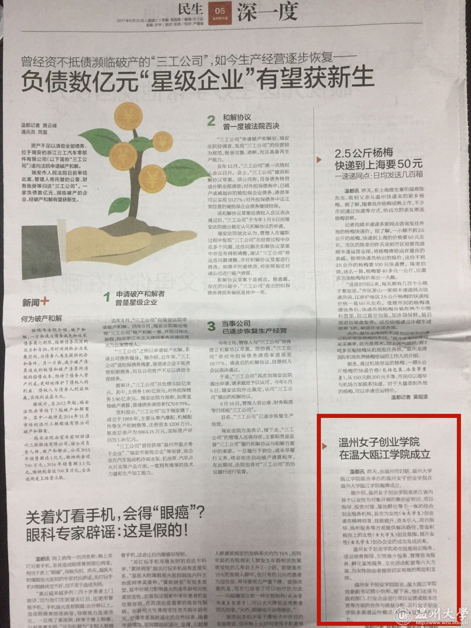 温都讯 昨天,由温州市妇联、亚洲成人 瓯江学院联合举办的温州女子创业学院在亚洲成人 瓯江学院揭牌成立。 据介绍,温州女子创业学院是浙江省内首个以女性为对象开展的集创业培训、项目指导、投资对接、基地孵化等为一体的综合创业服务机构,旨为女性(女大学生)创业者在精神培育、技能提升、资本引入、项目指导、场所服务等方面提供解决路径,营造积极向上的女性(女大学生)创业氛围,提升女性(女大学生)创办企业的成功及成活率。 温州女子创业学院将在技能培训服务、项目培育指导、引资推介服务、管理咨询服务、孵化基地服务、文化活动配套等六大方面为广大女性创业者提供切实有效的帮助和支持。 温州女子创业学院院长、瓯江学院党委副书记嵇小怡称,接下来,学院还将与社会政府部门、行业企业进行项目运营或股本注资等方面的合作与效益分配,实行女子创业学院多渠道运作模式,增强项目的运行活力。 相关链接: 温州都市报://news.wendu.cn/2017/0619/668195.shtml