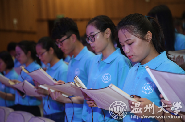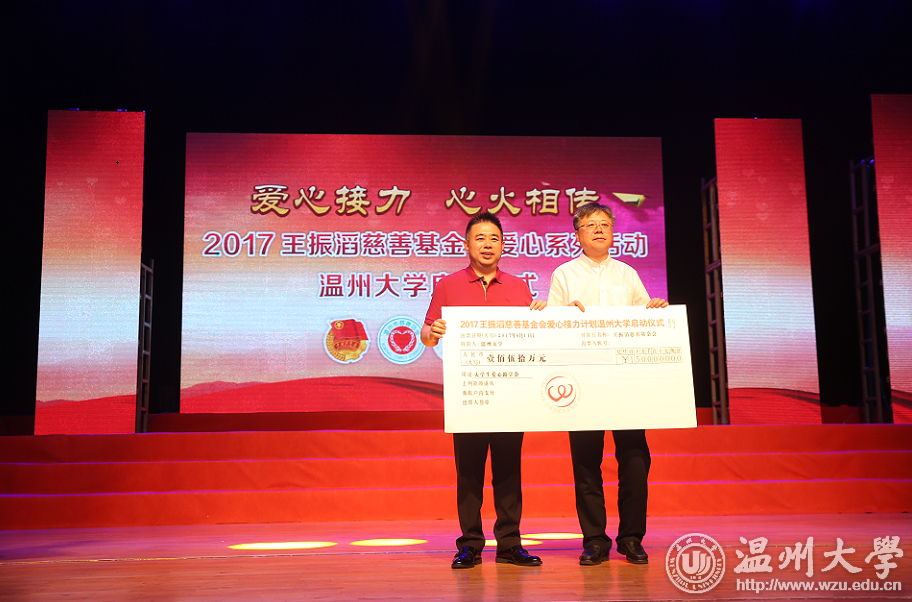 当天下午,2017年王振滔慈善基金会“爱心接力计划”温大站启动仪式在亚洲成人 育英大礼堂隆重举行。王振滔先生携众学子齐声诵读王振滔慈善基金会家训,以心唤心,并见证了十位温大榜样学子的模范力量。捐赠仪式上,其共出资150万元爱心助学金,为爱心接力手队伍再添300位优秀学子。