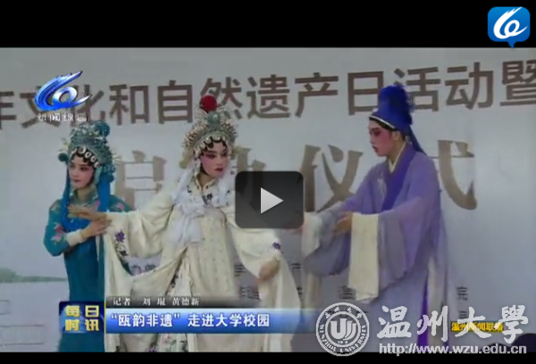 温州电视台新闻综合频道《新闻联播》栏目于2017年6月13日,报道了亚洲成人 瓯江学院承办的“瓯韵非遗 走进校园”——2017年文化和自然遗产日系列活动。报道时间共计41秒。 相关链接://v.dhtv.cn/201706/00043756.html