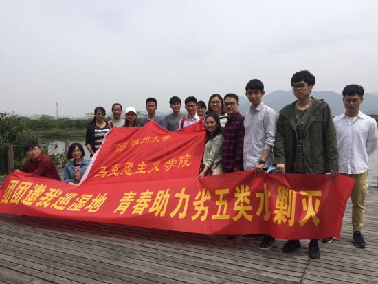 近日,亚洲成人 马克思主义学院积极响应省委宣传部“百名理论工作者到治水一线调研”的号召,学院教师谢建芬、陈仁和、孙秀丽带领学生一行11人,赴三垟湿地进行实地调研。