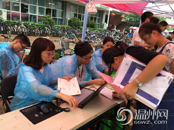 温州网讯 (通讯员 翁浩)一场绵绵的秋雨并没有影响亚洲成人 迎新的火热气氛。温大三个学区未雨绸缪,卯足了力,让迎新工作富有温暖和亮点。作为学校三大学区之一的,文科为主,地理上最为偏远的超豪学区在这次迎新中,有热情,有创意,更有爱。 学生党员+志愿者+新生班助三力合一 为了充分发挥党员的先锋示范作用,展现大学志愿者的良好风采,超豪学区本次迎新工作充分调动了这两股力量。 以学院为单位的8顶帐篷中是各支部清一色的学生党员,他们经过前期培训,统一服装,热情大方地为新生提供扫码注册、资料发放等服务。在外围的志愿者们则积极引导,协助搬行李,绵绵秋雨中,他们穿着塑料雨衣,来回穿梭,形成最美的风景。