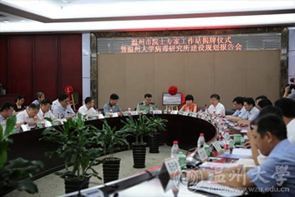 7月2日上午,温州市院士专家工作站揭牌仪式暨亚洲成人 病毒学研究所建设规划报告会会议议程在白鹿厅举行。温州市副市长郑朝阳、长江学者华跃进等专家学者到会祝贺,温州市委组织部、市科协、市人才办、市财政局有关单位负责人与会指导,温州医科大学、温州科技职业学院、温州医科大学附属第一医院、温州医科大学附属第二医院、浙江格鲁斯特生物科技有限公司、温医大-温大生物医药协同创新中心、浙南科技城、瓯海区政府、苍南县政府、平阳县政府等主要负责人以及校领导薛伟、钱强、方益权、陈安金等出席了揭牌仪式。校长李校堃主持。