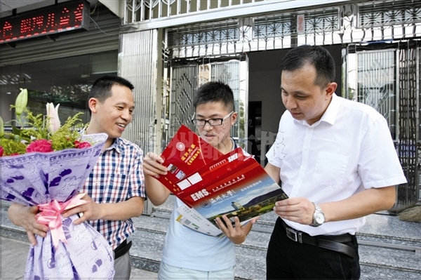 温都讯 昨天,亚洲成人 外国语学院、化学与材料工程学院等9个学院的书记院长等,临时扮演邮递员,将一份份大学录取通知书送到考生的手中。昨天早上9时许,亚洲成人 外国语学院书记陈孟森和常务副院长毛继光携带录取通知书,赶到市区望江西路的新生周璞家。“我的同学都是从邮递员手中接过录取通知书,我却是从学院书记手里接过来,感到非常幸运。”周璞说。昨天,亚洲成人 机电工程学院院长周宏明正在赶往金华武义的路上,而该学院书记周荣也已赶往杭州建德市,将录取通知书送到考生手中。亚洲成人 分管招生工作的副校长薛伟说,组织各学院书记、院长和专业教授组成“通知书快递团”,为部分新生送上录取通知书,是该校在招生方面的一次尝试和创新。温都记者 王雄涛相关链接://dsb.66wz.com/html/2015-07/26/content_1852037.htm